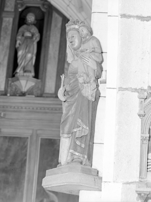 Statue (d'applique, demi-nature) : Vierge à l'Enfant, église paroissiale Saint-Pierre, Saint-Paul (Neulliac),