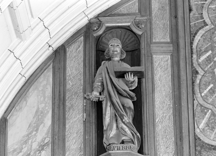 Inscription sur la base de chaque statue : ST PIERRE ; ST PAUL.