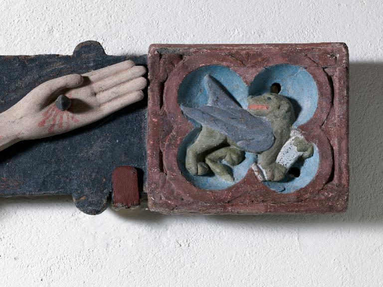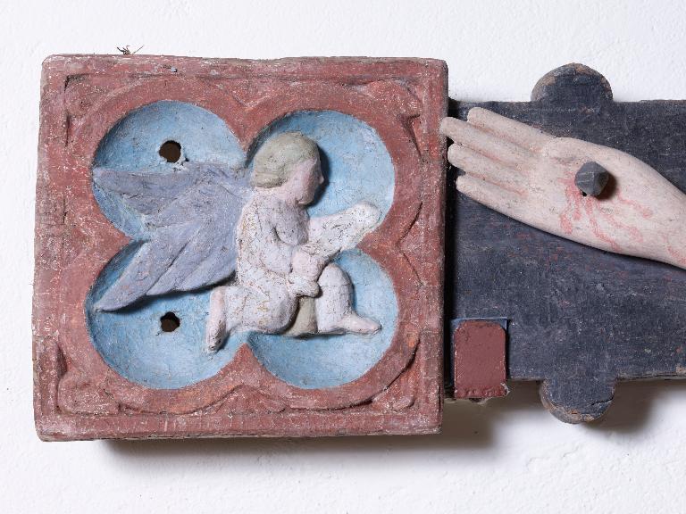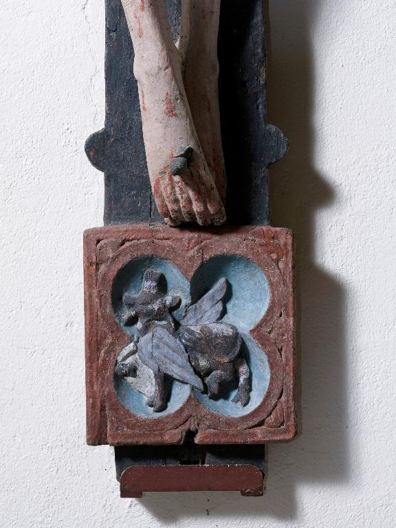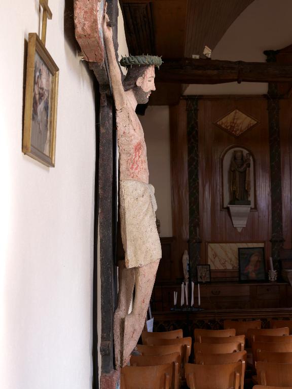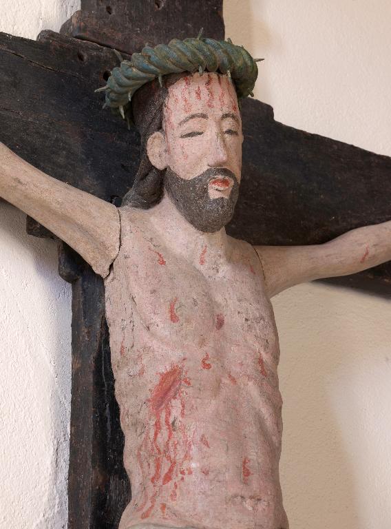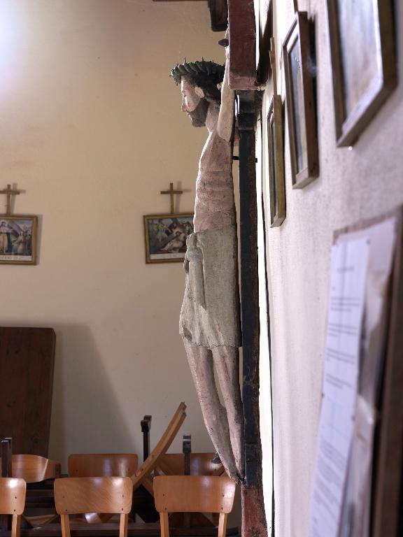 Le Christ en croix, peut-être réalisé au 14e siècle, a été restaurée en 2009 par l'Atelier Coreum.
