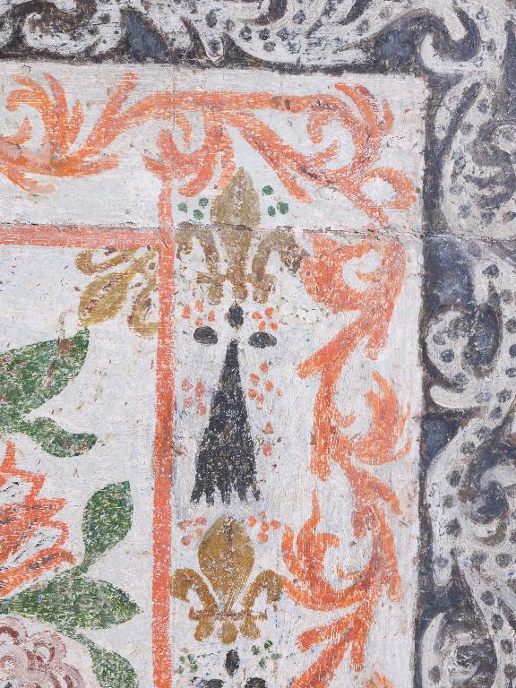 - chêne, décor en bas relief, peint, polychrome, faux marbre