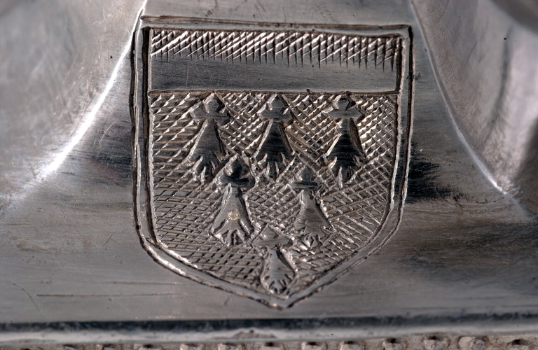 Armoiries (gravées sur le pied) : d'hermines au chef de gueules, famille de Champaigné.