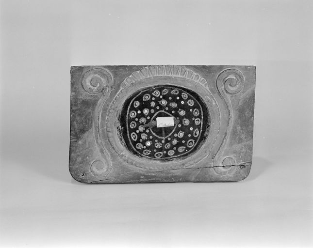 Reliquaire en chêne contenant une relique identifiée par une inscription à l'encre sur papier : saint Meleuc.