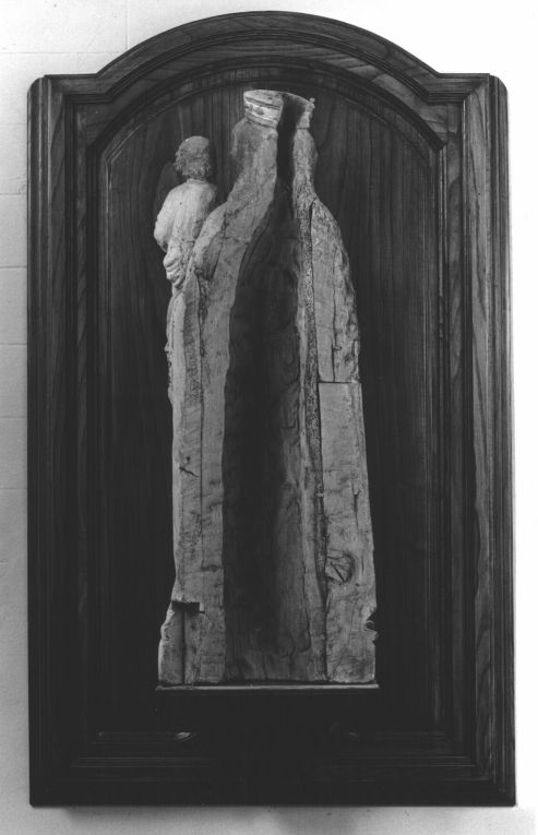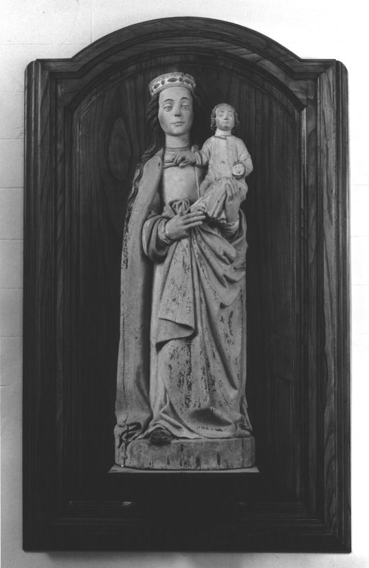 Vierge couronnée, enfant vêtu d'une tunique longue.
