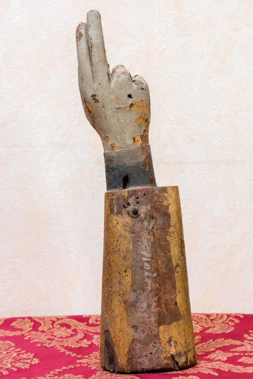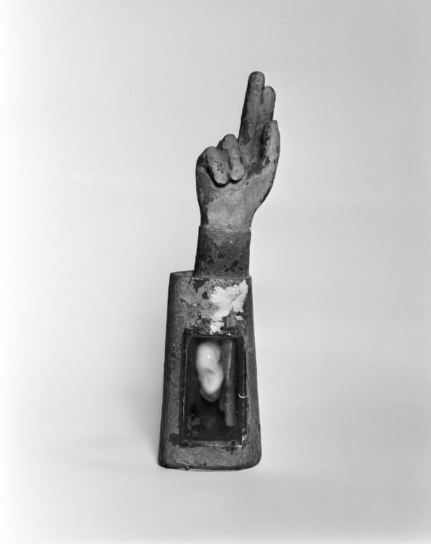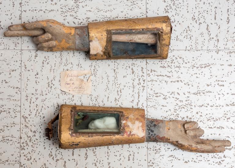 Ensemble de 2 reliquaires morphologiques (bras-reliquaires) de saint Corentin et de saint Clair, Hôpital (Josselin)