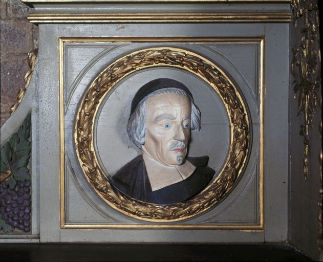 Ensemble constitué de vestiges d'une œuvre du 17e siècle : trois panneaux sculptés ont été remontés pour constituer l'autel ; deux autres panneaux représentant saint Jean Eudes et sainte Thérèse d'Avila encadrent le tabernacle du 18e siècle.