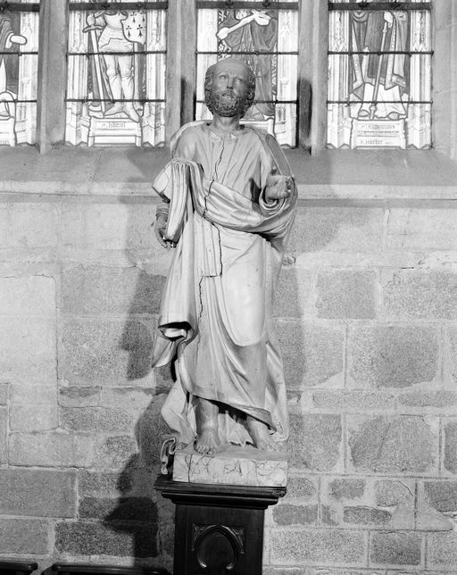 Cette statue fait partie d'une commande de 1826 passée par la fabrique de Josselin au sculpteur A. Pobéquin, qui incluait également un saint Jacques, un saint Paul et un saint Vincent Ferrier. Les trois premières statues ont été commandées pour l'autel de saint Yves, celle de saint Vincent Ferrier pour l'autel de la Vierge.