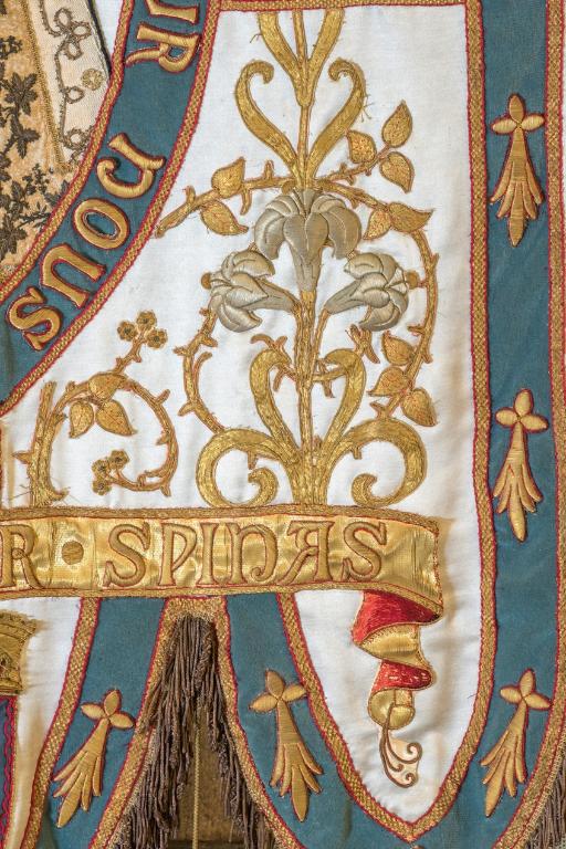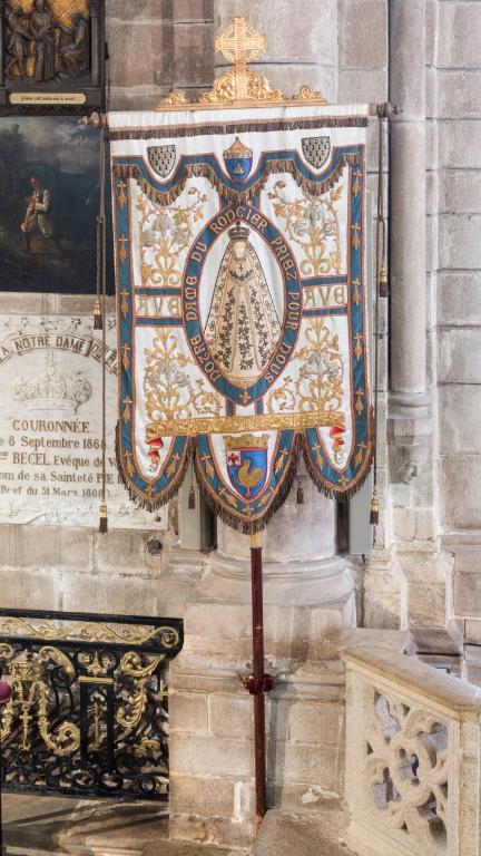 Bannière exécutée entre 1866 et 1897 - dates extrêmes de l'épiscopat de Mgr Bécel, peut-être en 1891 à l'occasion de l'attribution du statut de basilique à l’église paroissiale ; elle a été restaurée en 1937 et 1991.