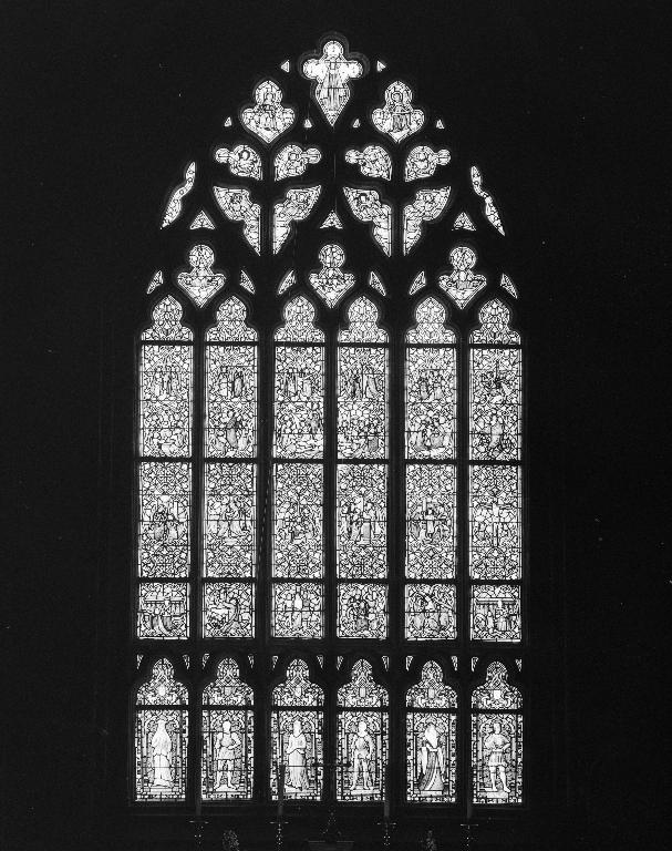 Verrière à six lancettes en arc trilobé et tympan ajouré.