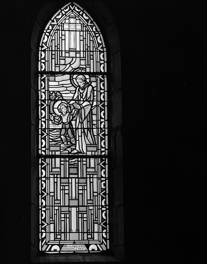 Baies 3 et 4 : DONS DES PAROISSIENS DE BRILLAC ; baies 1 et 2 : A BESSAC, 1938 ; baie 1 : DON DE MR SELO, RECTEUR.