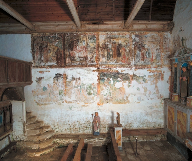 La peinture monumentale sur la vie de saint Fiacre est probablement contemporaine de la chapelle pour laquelle elle a été créée au 16e siècle. Les manques importants sur les peintures du registre inférieur et l'altération générale rendent l'identification des scènes très difficile.