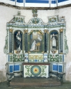 Antérieure au retable, la statue ne semble pas avoir été prévue pour lui : l'inscription peinte sur le socle indique qu'elle remplace une statue de saint Guénin.
