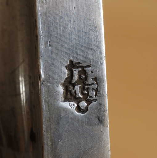 Poinçon sur le bord du pied : J.P.M.T. avec point de remède en bas du poinçon et entre les initiales M et T.