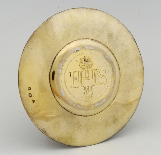 Coupe intérieure dorée. Assemblage par vis. Fausse coupe. Patènes entièrement dorées.