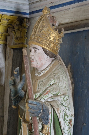 Statue du 16e siècle remployée dans le retable de la 2e moitié du 17e siècle.