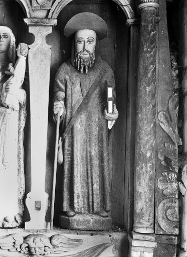 Inscription concernant l'iconographie peinte sur le socle : ST JACQUES.