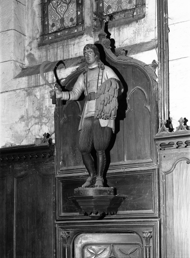 La faucille est cassée ainsi que la partie avant du pied gauche. La statue est entièrement vermoulue.