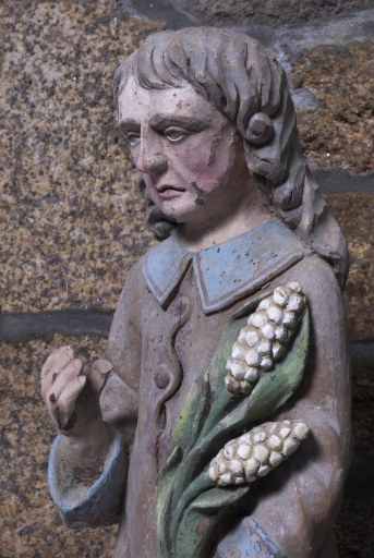 Ensemble de 2 statues (en pendant) : Saint Isidore et Saint Jean-Baptiste,