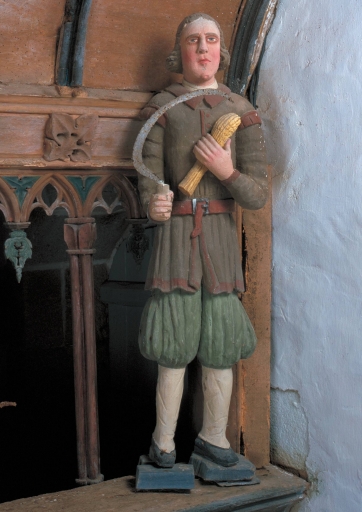 Les deux avant-bras sont rapportés ainsi que la faucille et les pans du bragou braz. La faucille est fer.