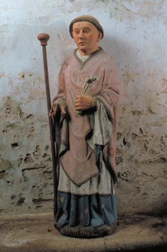 L'oeuvre réalisée par le même atelier, pour la chapelle Saint-Fiacre, à la fin du XVe siècle, fait partie d'un ensemble de quatre statues. On retrouve la même facture réaliste sur les statues de saint-Fiacre, de saint Vincent et de saint Méen. Il s'agit probablement de portraits locaux.