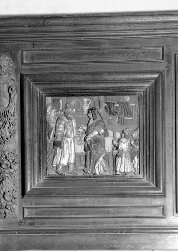 Retable, panneau de gauche, le juif soudoyant une femmeImmatriculation