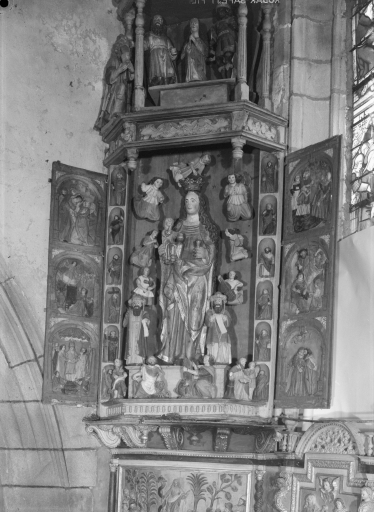 Maître-autel et ses statues : La Vierge ; La Trinité, chapelle du Notre-Dame-du-Crann (Spézet),