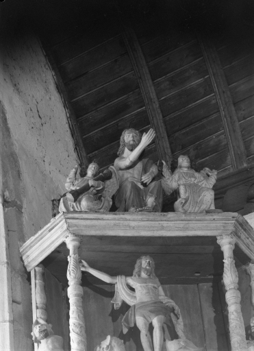 Maître-autel et ses statues : La Vierge ; La Trinité, chapelle du Notre-Dame-du-Crann (Spézet),