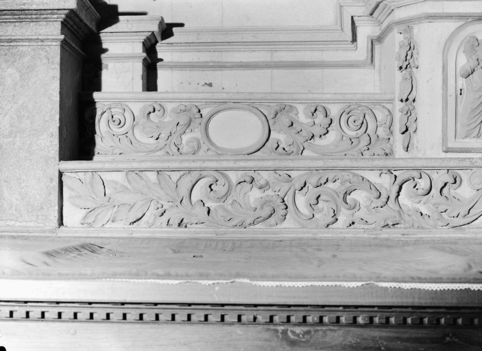 Retable latéral et ses statues dit retable du Rosaire, église paroissiale Notre-Dame de l'Assomption (Cléden-Poher),