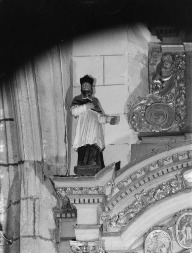Retable latéral et ses statues dit retable du Rosaire, église paroissiale Notre-Dame de l'Assomption (Cléden-Poher),