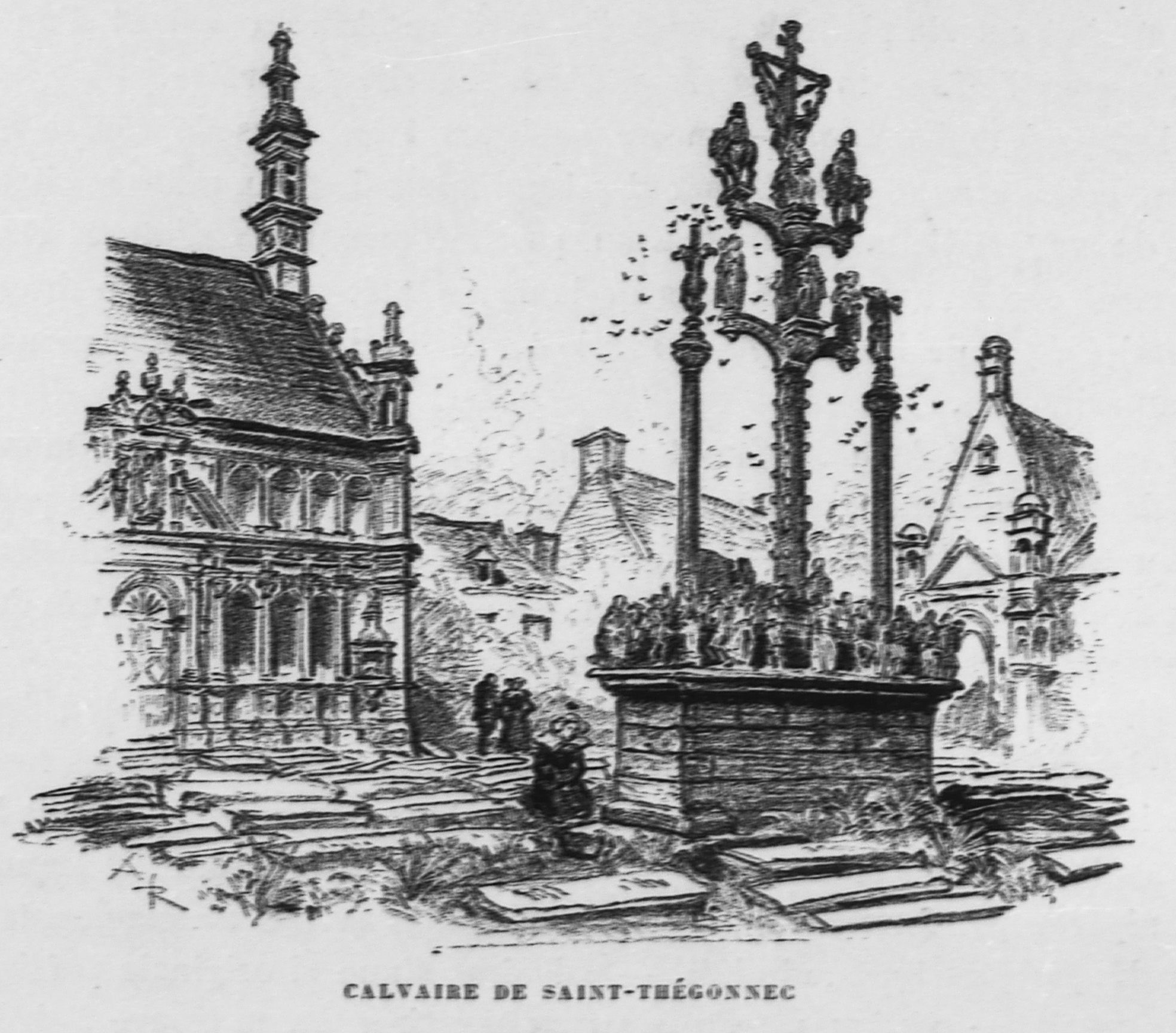 Reproduction - Calvaire, vue de trois-quarts, côté Vierge.Immatriculation
