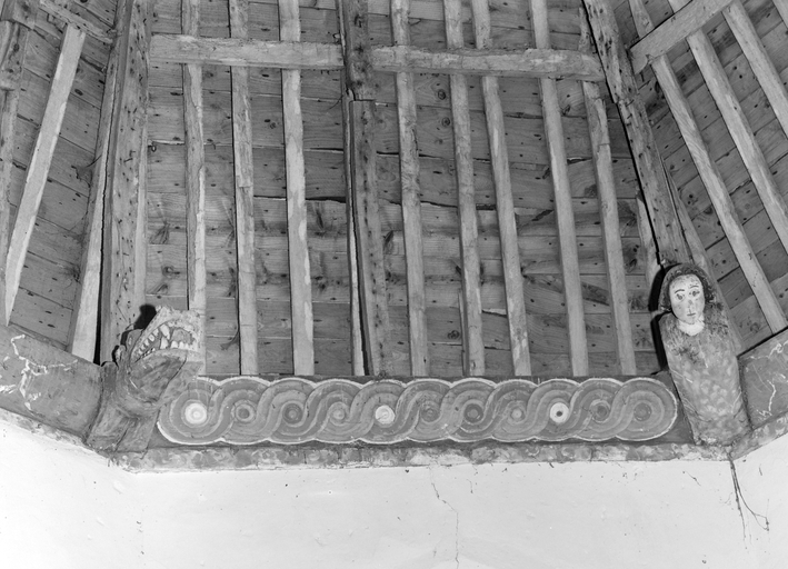 Sablières, bras sud : tronçon du pan sud-est avec les 2 blochets, monstre et angeImmatriculation