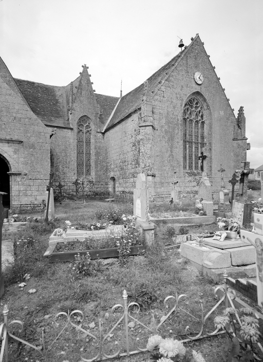 Façade sud : partie orientale du porche et pignon du croisillonImmatriculation