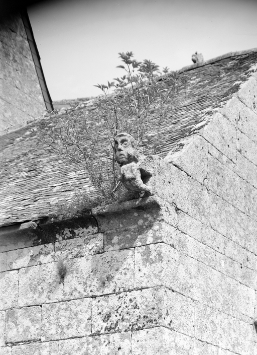 Façade sud : corbeau du rampant ouest du porcheImmatriculation