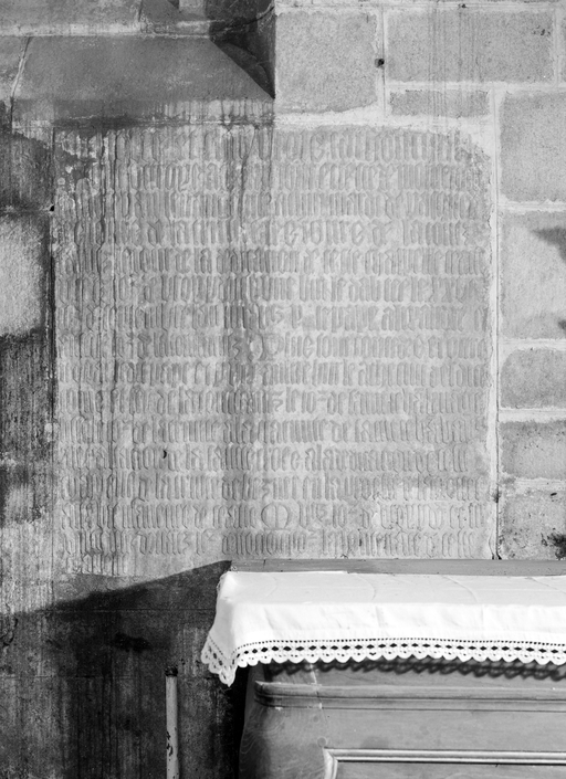 Transept, croisillon nord : mur est, inscription sur une dalleImmatriculation