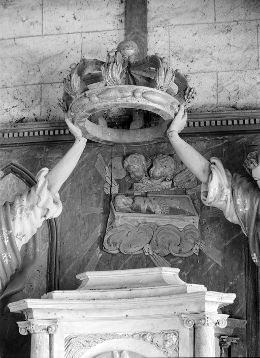 Retable central, vue du motif au-dessus du tabernacleImmatriculation