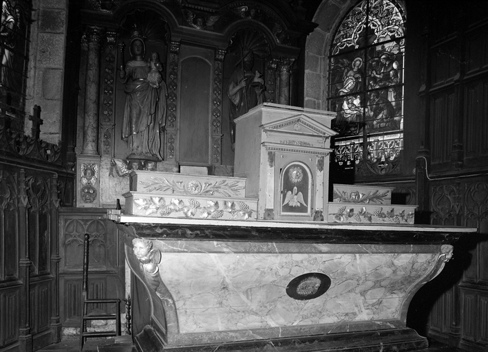 Autel, tabernacle, exposition, gradins d'autel (2), retable (maître-autel, retable architecturé à niche), église paroissiale Notre-Dame-de-Lorette (Roudouallec),