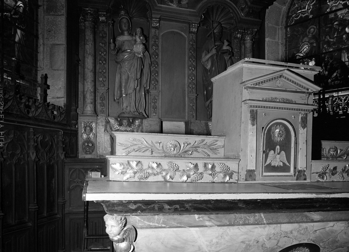 Autel, tabernacle, exposition, gradins d'autel (2), retable (maître-autel, retable architecturé à niche), église paroissiale Notre-Dame-de-Lorette (Roudouallec),