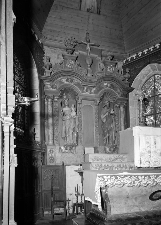 Autel, tabernacle, exposition, gradins d'autel (2), retable (maître-autel, retable architecturé à niche), église paroissiale Notre-Dame-de-Lorette (Roudouallec),