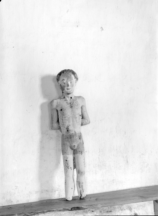 Statue de saint-Sébastien en bois peint : vue de dosImmatriculation