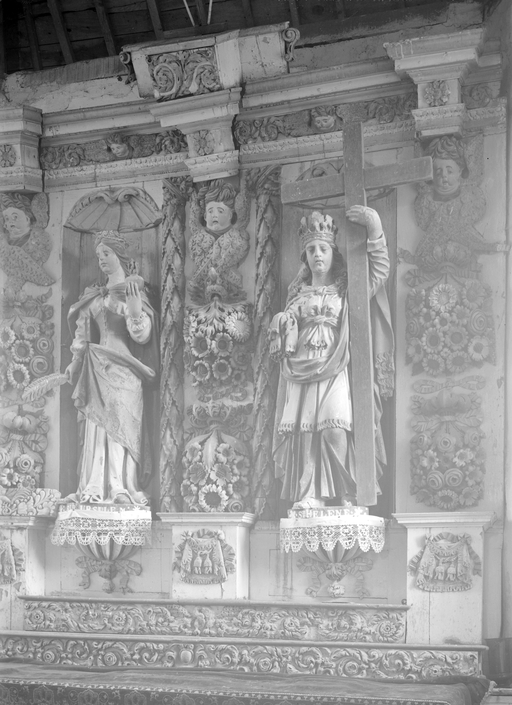 Retable, gradins d'autel (2) (retable architecturé à niches), chapelle Sainte-Hélène et Sainte-Ursule (Plouray),