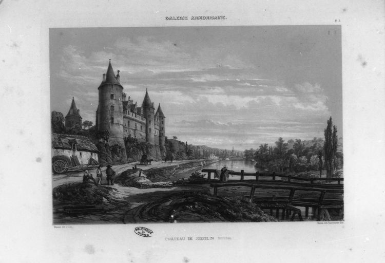 ' Château de Josselin (Morbihan) ' : au 1er plan, le pont depuis l'ouest. Gravure, vers 1848 (B. M. Rennes)Immatriculation