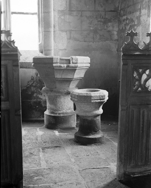 Cuvette des fonts baptismaux, église Paroissiale Saint Hernin (Locarn),