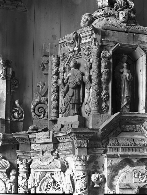 Autel, retable, tabernacle (autel secondaire, retable cadre, tabernacle à ailes), dit de la pitié du père, église Paroissiale Saint Hernin (Locarn),