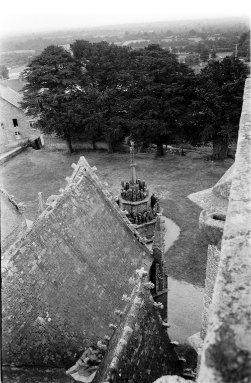 Toiture du porche sud et vue plongeante sur le calvaireImmatriculation