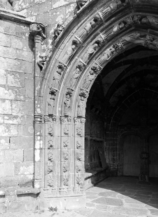 Façade sud, porche, détail du piédroit ouestImmatriculation