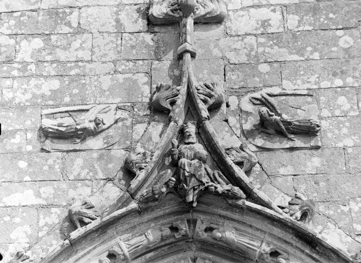 Façade sud, porche, détail de l'accolade avec sculpture de Dieu le PèreImmatriculation