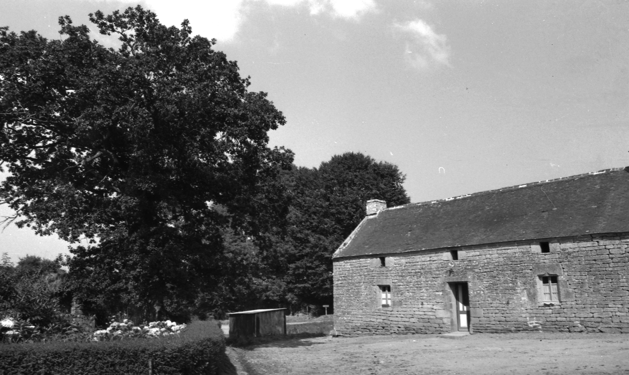 Kersalaün - Ferme, façade de la maison et le chêne.Immatriculation