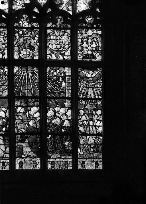 Verrière (verrière figurée) : Ascension, Pentecôte, chapelle Sainte-Barbe (Le Faouët),