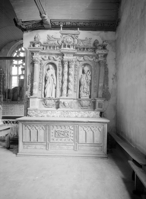 Retables (2), gradins d'autel (2) (retable architecturé à niche), chapelle et fontaine Saint-Urlo (Lanvénégen),