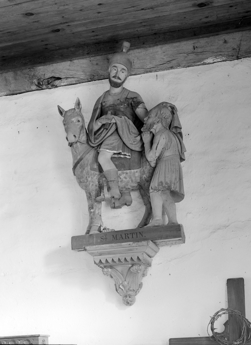 Groupe sculpté (petite nature, d'applique) : la Charité de saint Martin (1), chapelle Saint-Tugdual (Guiscriff),