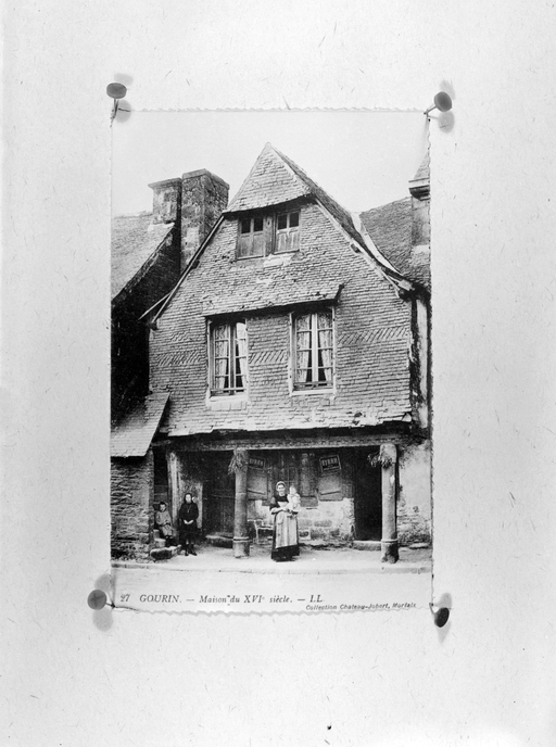 Carte postale ancienne - Bourg, maison disparue, place de la posteImmatriculation